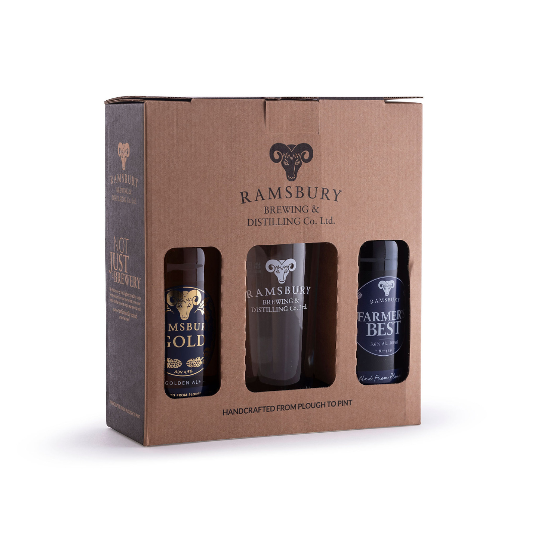 What’s more, this beer glass gift includes a unique branded Ramsbury pint glass that offers the recipient of this beer glass gift with Ramsbury merchandise of their very own, the best beer gift!